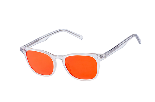 Our blue blocking glasses use carefully developed lens material to block 100% of blue and green wavelengths linked to melatonin suppression. Reducing exposure to these frequencies helps your body follow its natural sleep–wake rhythm. It also minimises the risks of digital eye strain and feelings of restlessness that can come after too much exposure to artificial light.