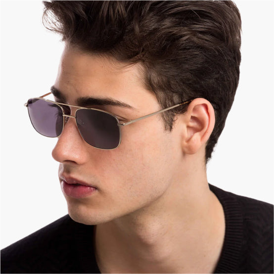 Premium lightweight metal alloy with luxurious gold arms.